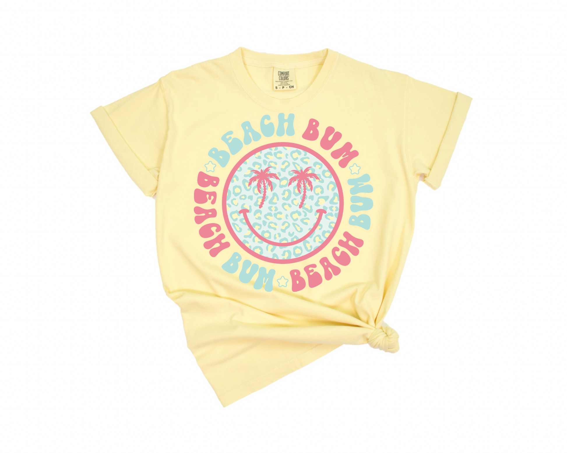 This Beach Bum Tee is great for Spring and Summer! Printed on a Comfort Colors butter tee. Both DTF and shirt are created in our shop in Oklahoma. Available in youth and adult sizes.