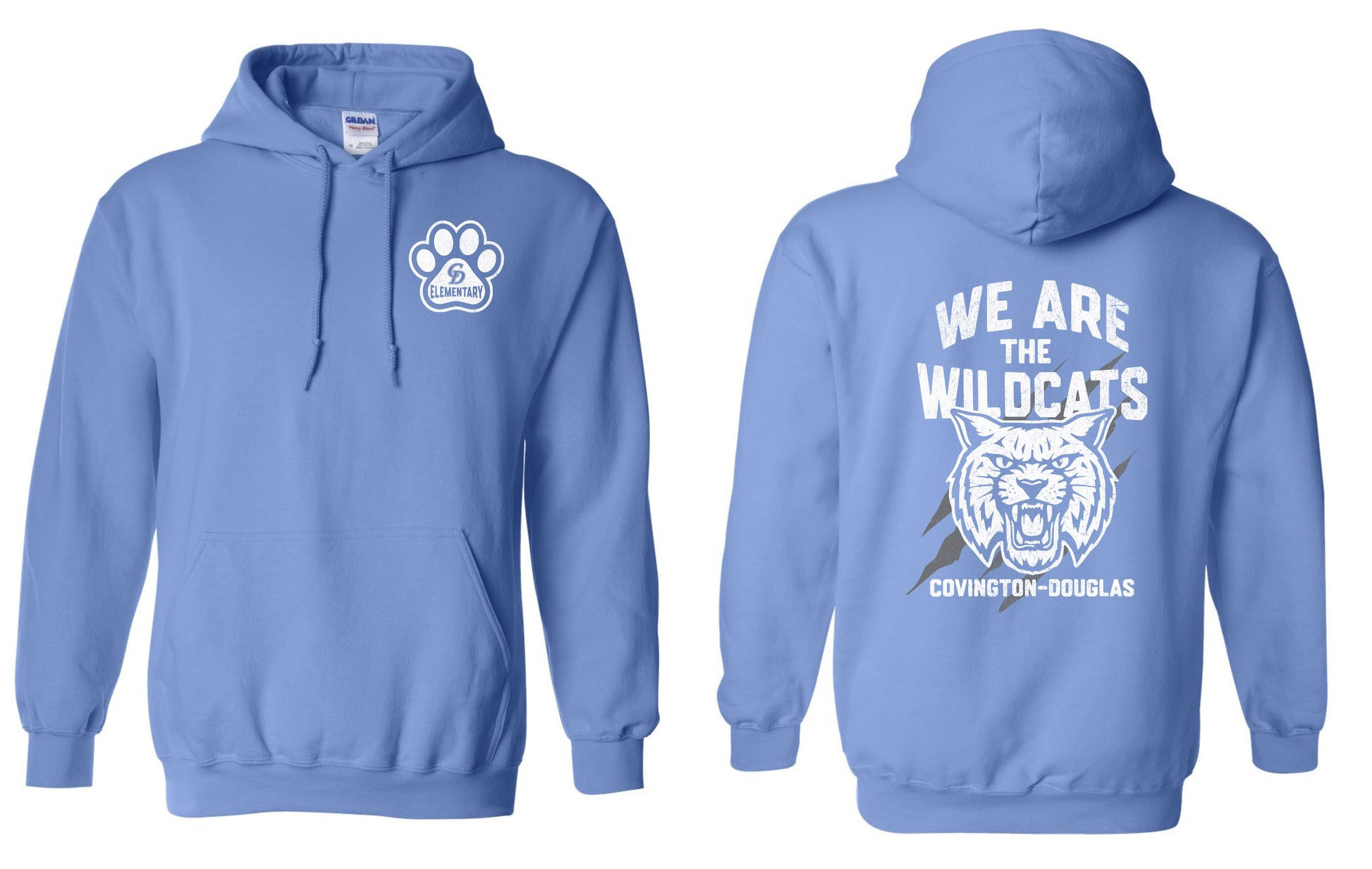 Available in Carolina Blue or Sport Grey Gildan Unisex Heavy Blend Hoodie Adult s-3xl. Youth Gildan xs-xl. Choose local delivery at checkout to avoid shipping charges. MUST ENTER STUDENT NAME FOR DELIVERY AT CHECKOUT.