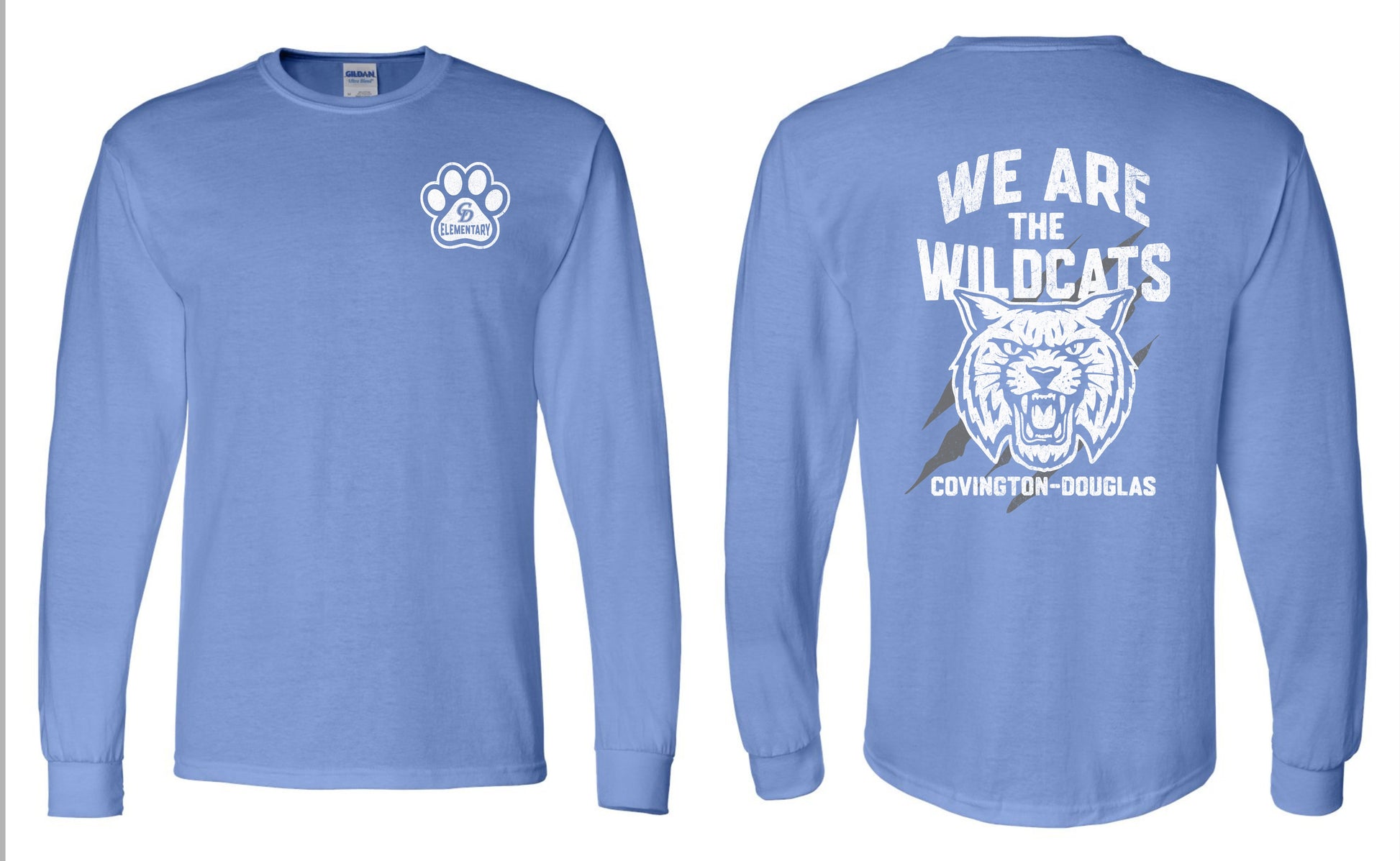 Available in Carolina Blue or Sport Grey Gildan Adult S-3xl unisex long sleeve T-shirt. Youth xs-xl. Choose local delivery at checkout to avoid shipping charges. MUST ENTER STUDENT NAME FOR DELIVERY AT CHECKOUT.