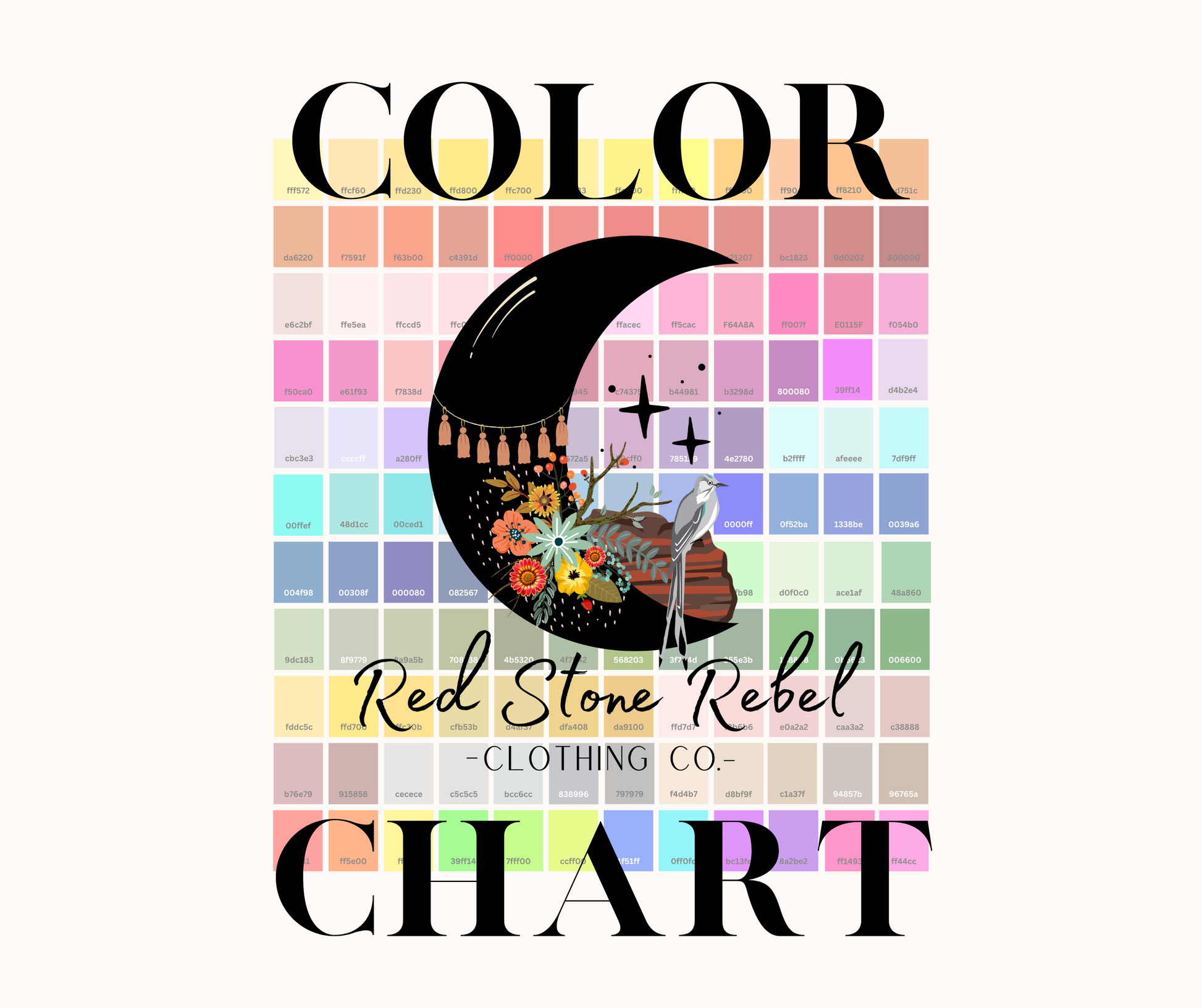 -Listing is for one Color chart, free of charge, using CANVA hex codes.